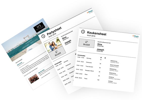 Keuken & partysheetsBij elke Magic Manager kunt u interne sheets maken. Deze worden automatisch gemaakt wanneer u een offerte maakt. De hapjes, snacks, lunch en diner staan hier immers al op!