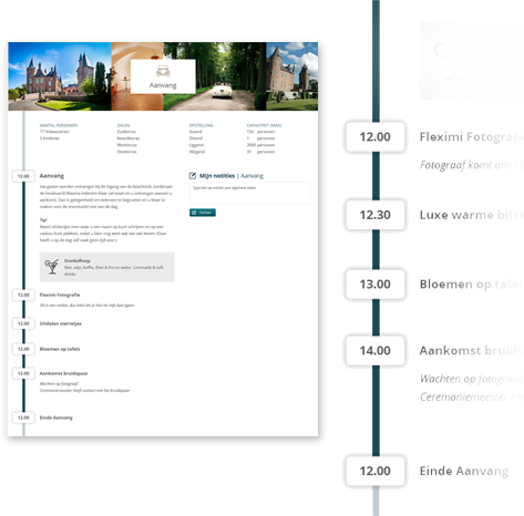 Een unieke tool om samen met uw klant het feest te organiseren. Kijk op onze speciale offerte planner
