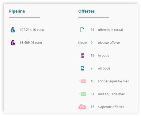 • Overzichten van uitstaande offertes, verlopen offertes, succespercentages etc
