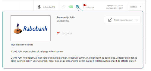 aquisitie. Maak intern notities en stel terugbelacties in.